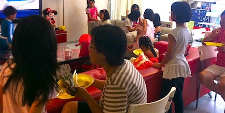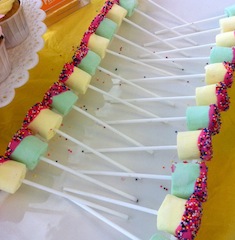 To celebrate the 7th birthday for three lovely little girls, the host invited all their classmates and friends to an intimate home party. Guests were treated to a colourful display of desserts that included marshmallow pops, cupcakes, macarons and customized cookie bags to bring home.